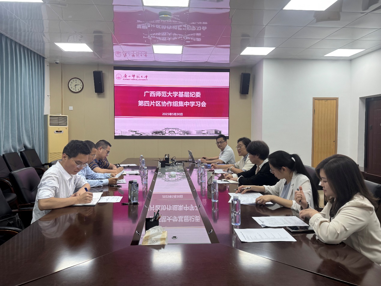 2025年5月30日,广西师范大学基层纪委第四片区协作组在育才校区重点实验楼1-304会议室召开集中学习会暨纪检监察工作“三化”建设年工作推进会。驻校纪检监察组纪检监察室负责人,以及第四片区7个学院的纪委书记、纪检干部等参会。会议由化学与药学学院纪委书记沈青主持。